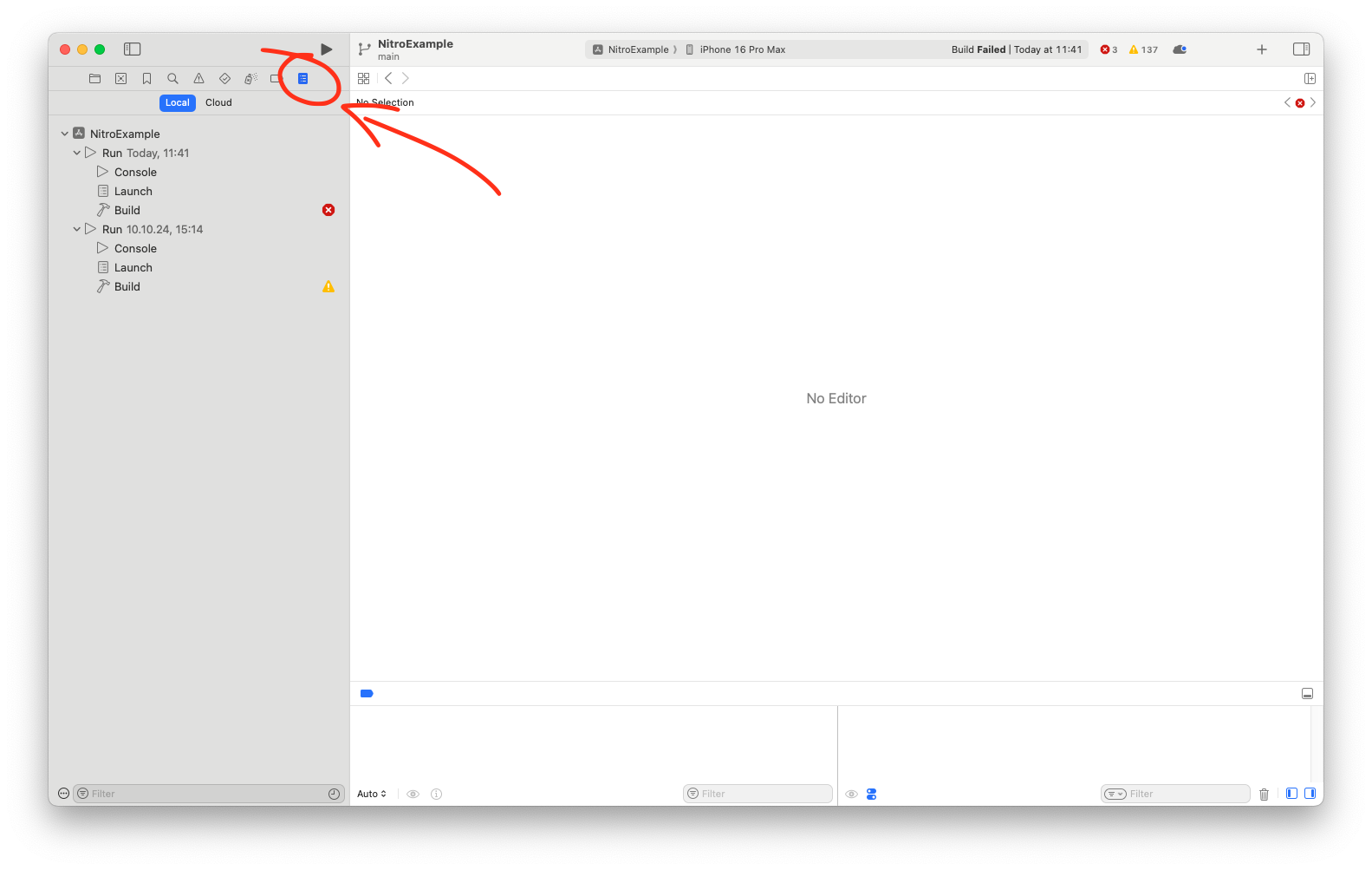 2. When the build fails in Xcode, open the "Report Navigator" tab from within the left sidebar: