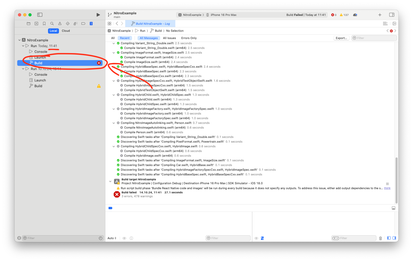 If your app fails to build after installing Nitro or a library powered by Nitro, make sure to post full build logs: